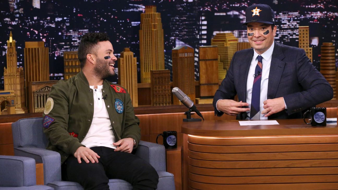Once Altuve was seated on late night's most-famous couch, both men wore the second baseman's signature eye black during the interview, which featured several extended cheers from Fallon's Big Apple audience.