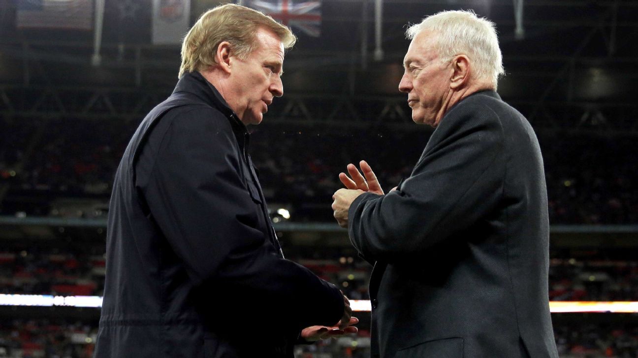 Jones said his concerns went beyond Elliott. He was concerned about lower television ratings, the effect of the protests before and during the national anthem and the structure of Goodell's proposed contract.