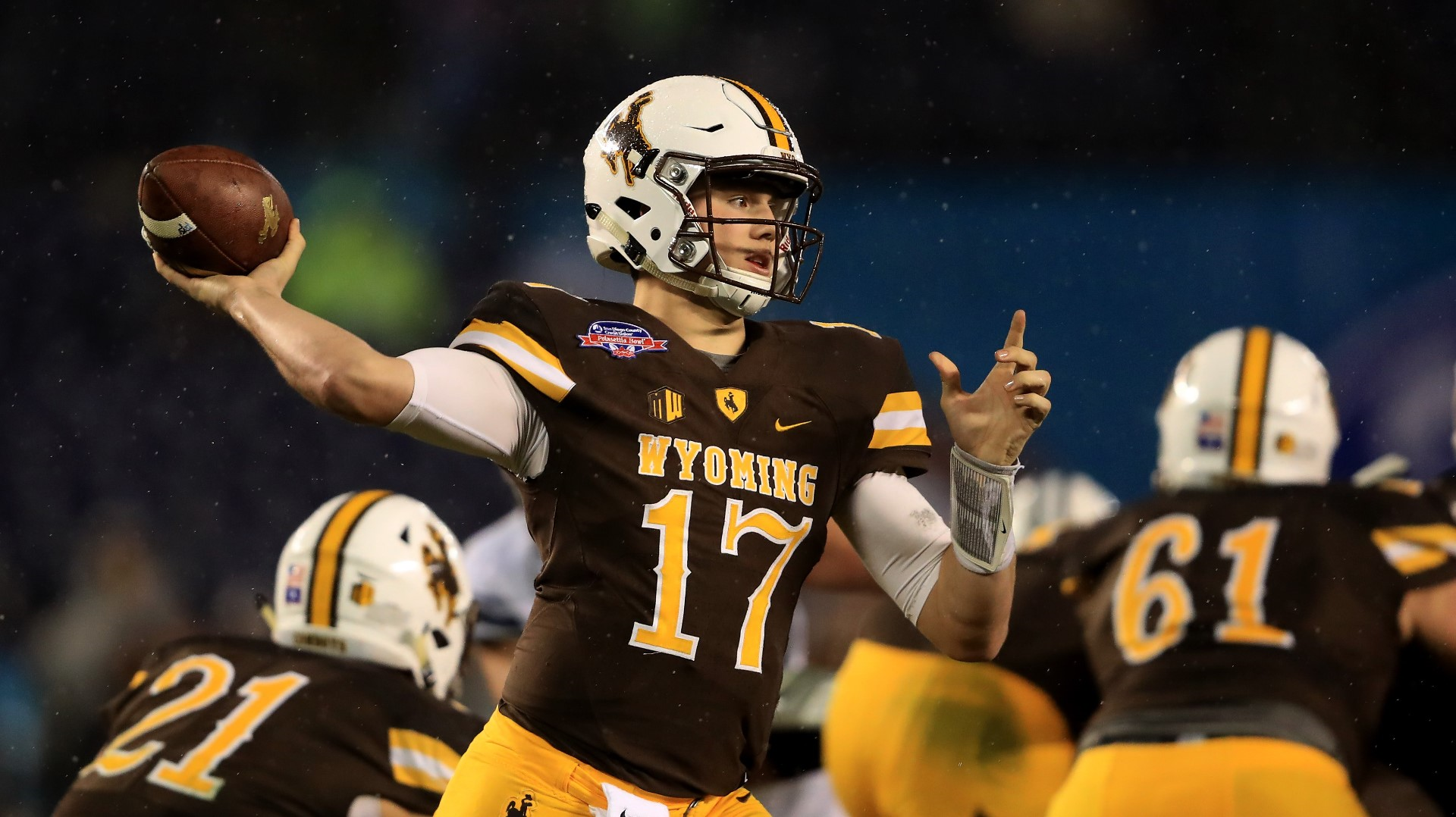 Josh Allen passes the ball during the Poinsettia Bowl at Qualcomm Stadium on December 21, 2016. Photo by Sean M. Haffey/Getty Images.