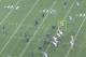 ...he simply lets the ball run through his hands, and Wright (No. 50) is able to pick the ball off. Bryant's tape shows far too many of these plays, in which he should be able to make the catch, and his focus strays from the assignment.