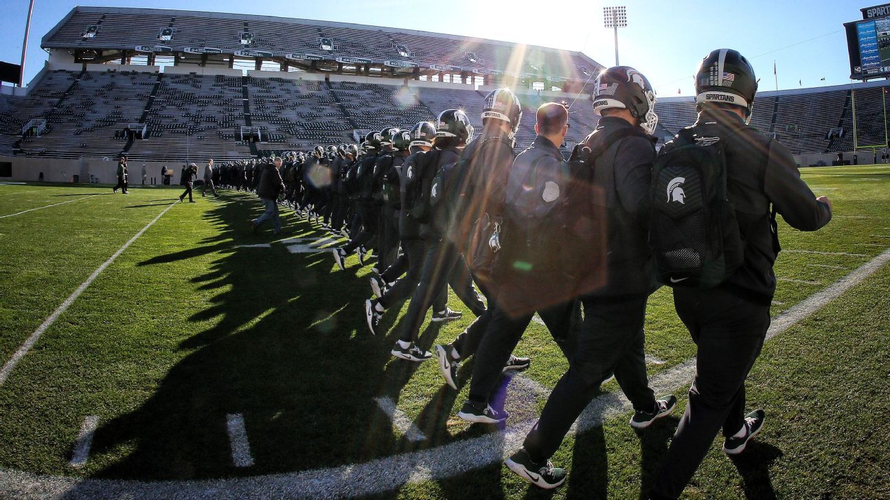 Michigan State traditionally marches from one end of the field together in a straight, shoulder-to-shoulder line when they enter the stadium nearly two hours before their home games. Ablauf said the Spartans arrived 10 minutes late for their ritual so some Wolverines players were already on the field stretching. Those players clashed briefly with some of the Spartans in some pregame posturing.