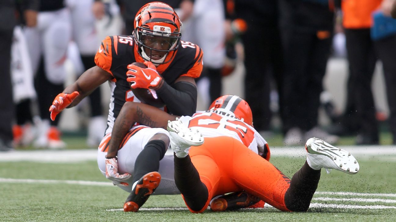 Randall's interception came on the second play after the Browns had taken a 21-0 lead. He immediately ran out of bounds, and found himself face to face with Jackson on the Bengals sideline.