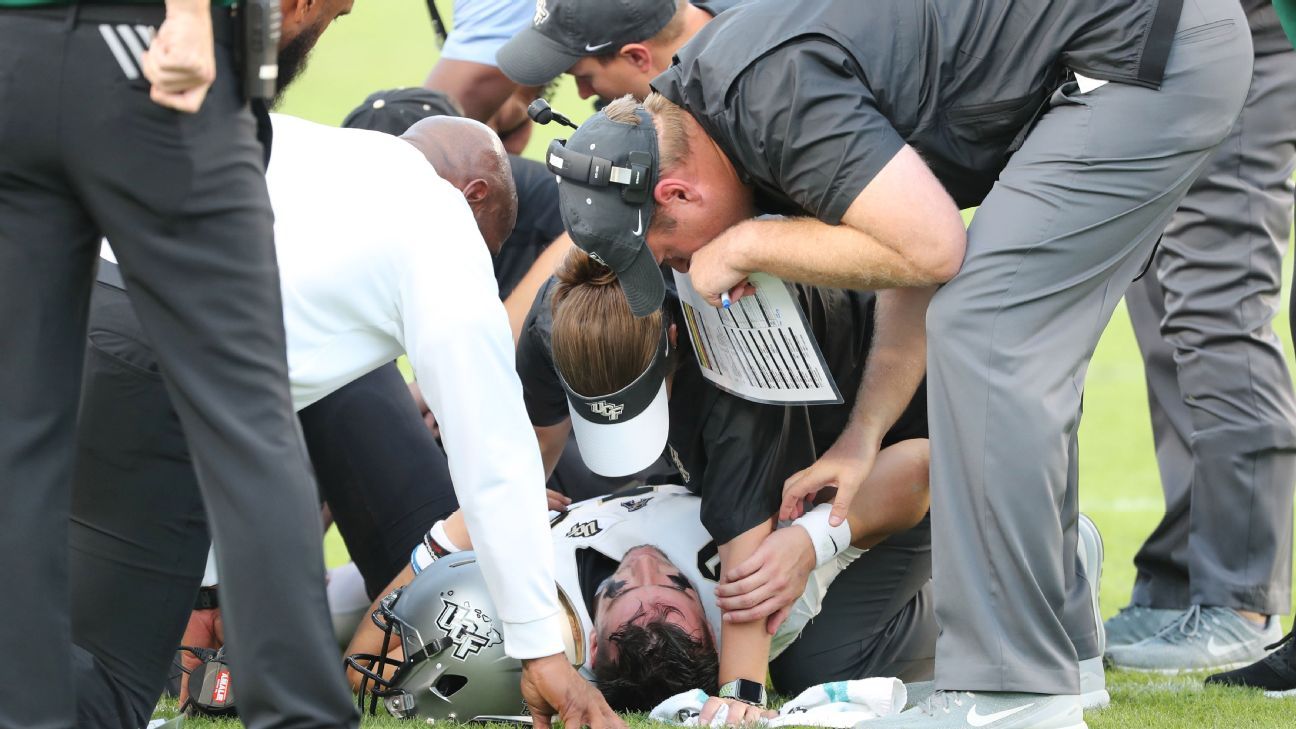 TAMPA, Fla. -- UCF quarterback McKenzie Milton appeared to seriously injure his right leg on a scramble in the second quarter against USF on Friday, a devastating blow to a team that has won 23 straight games.