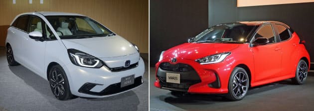 小型ハイブリッド車(HEV)で真っ向勝負するホンダ「フィット」とトヨタ自動車「ヤリス」。発売1カ月のHEV受注台数で、フィットに軍配が上がった。ホンダはフィットのHEV開発で燃費性能を先代水準で十分と割り切り、ほぼ据え置く思い切った方針で臨んだのが、ひとまず奏功した格好だ。HEVの燃費を競う時代は終わるのか。