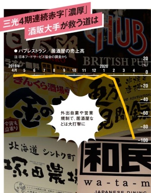 都心部では、独自色を出せる個人経営と体力のある大手への二極化が進み、中堅チェーンが厳しくなるとの見方は多い。「金の蔵」「東方見聞録」など約100店舗(19年末)を営む三光マーケティングフーズは、20年6月期に4期連続の最終赤字となる可能性が高い。